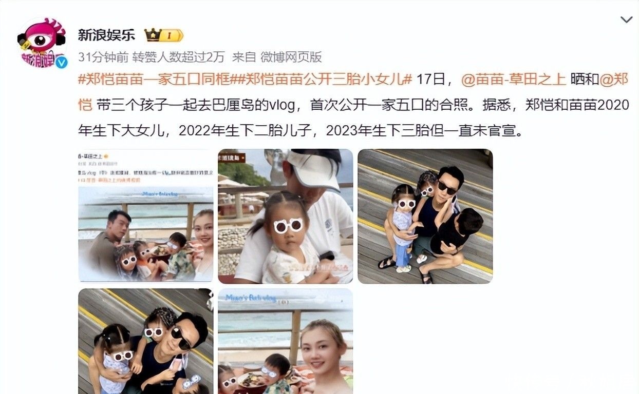 2026日,郑恺与苗苗的名字同步跃升微博热搜前列,“#郑恺苗苗一家五口同框#”“#郑恺苗苗官宣三胎小女儿#”双话题持续霸榜,热度久久未退。